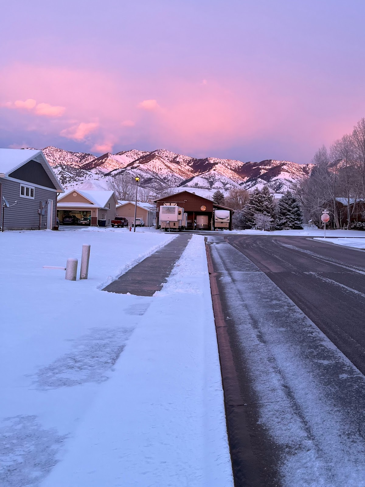 At the end of the day, the snow stopped. The light bathed a beautiful pink highlight over everything and created an incredible, brilliant orange sunset. A beautiful close to our strange day.